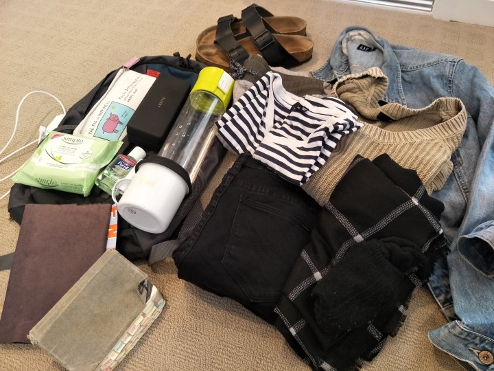 Shoes: hiking boots, Nike’s, Birkenstock’s and thongs (I said yes to the shower shoes.)